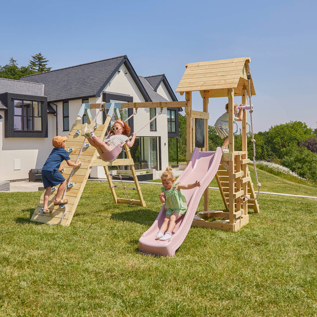 Notre force réside également dans la modularité de nos produits. Ces derniers s’adaptent, et se personnalisent selon vos envies et vos besoins. De ce fait, nos jeux d’extérieur conviennent à une multitude d’espaces et ce peu importe la superficie. Si vous avez un petit jardin, optez donc pour une maisonnette de jeu ou un toboggan individuel. Si vous recherchez une structure plus grande et modulable, nos tours à grimper et nos aires de jeux sont idéales. Équipées d’un toboggan et de balançoires, elles offrent une multiplicité d'emploi. Certaines de nos tours à grimper possèdent même une petite cabane, parfaite pour stimuler l’imaginaire et la créativité de vos enfants.