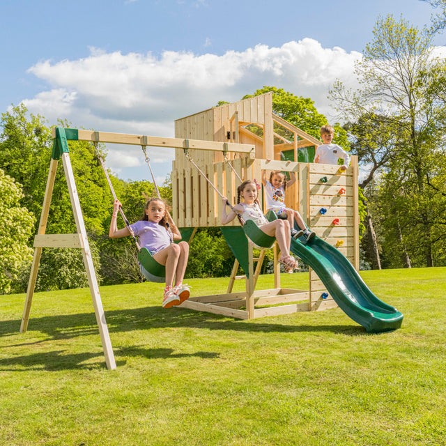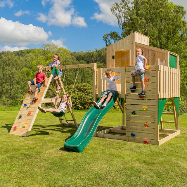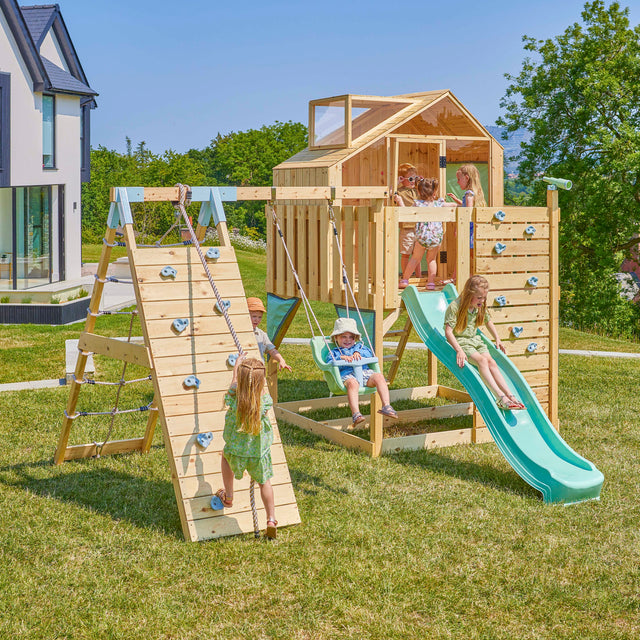 Le jardin est un formidable terrain de jeu pour les enfants, et nous souhaitons encourager les activités extérieures. En plus de la stimulation physique et de la dépense d'énergie, ces dernières favorisent également l'ímaginaire et la créativité. Tranformez ainsi votre jardin en un véritable espace récréatif. Nos jeux de plein air sont exclusivement fabriqués en bois de haute qualité, garantissant ainsi des produits parfaitement adaptés à un environnement extérieur, résistants et durables. Nous vous proposons des toboggans, tout un assortiment de balançoires mais aussi une incroyable sélection d'aires de jeux.