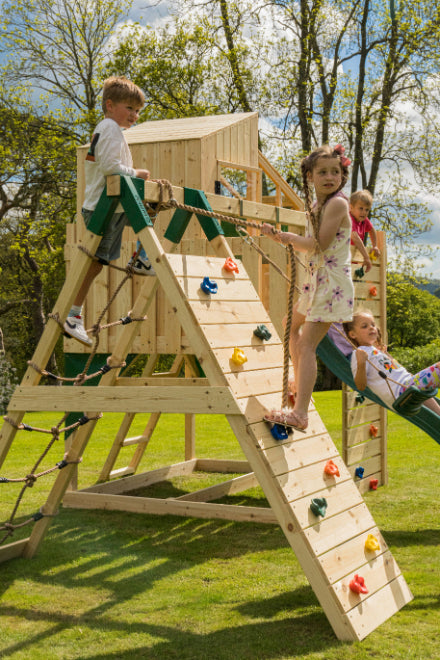 - La structure d'escalade en bois est stable et convient également au jeu des enfants plus âgés.