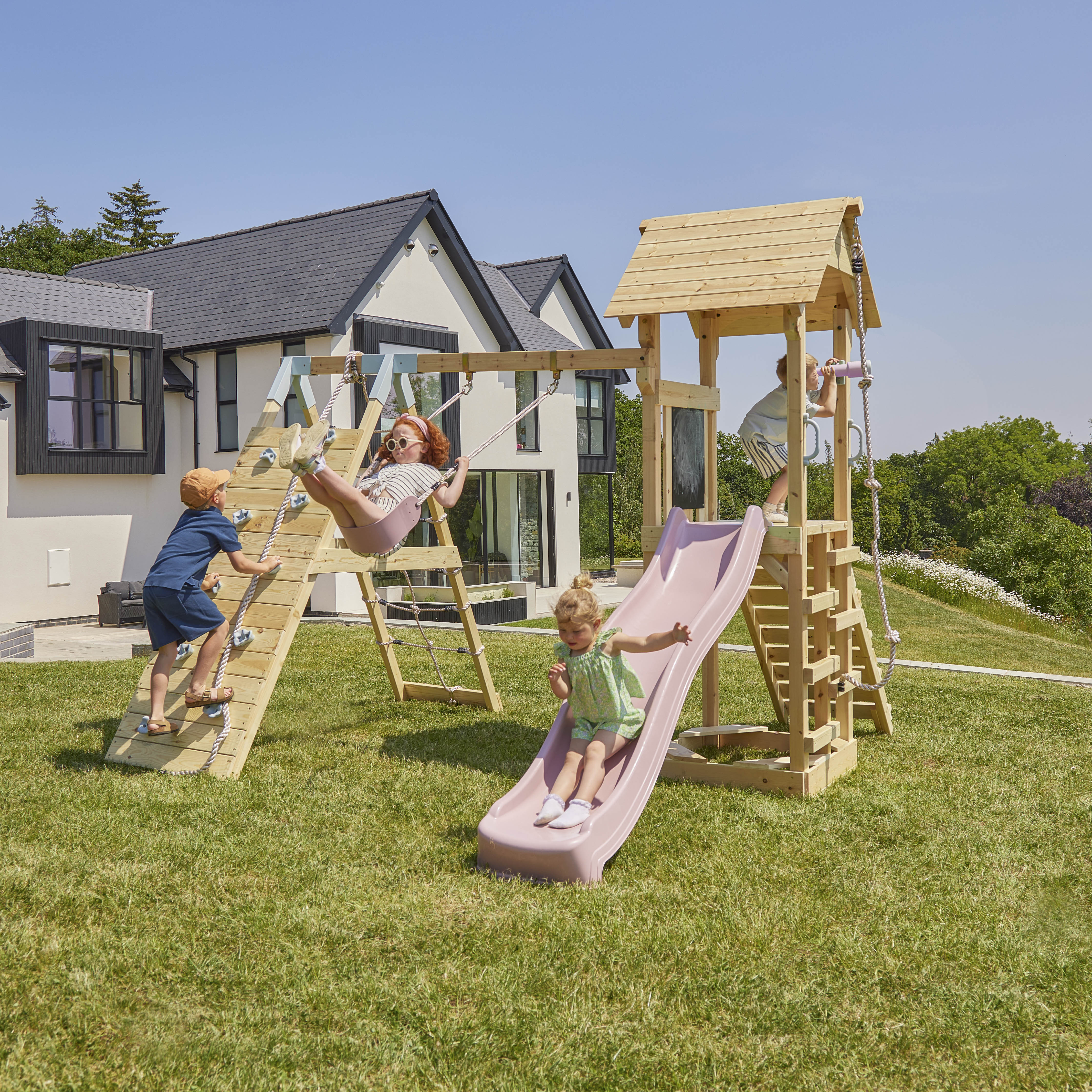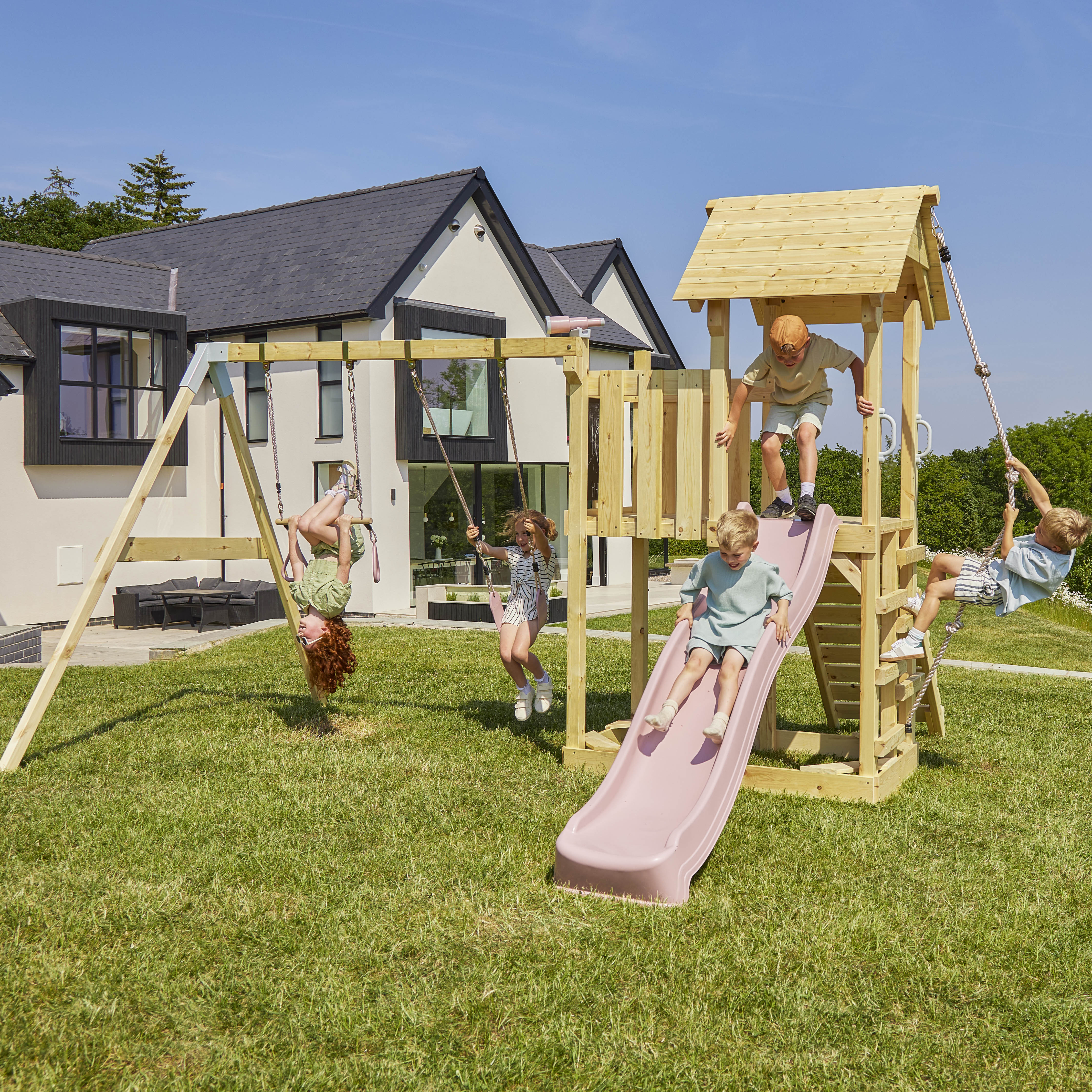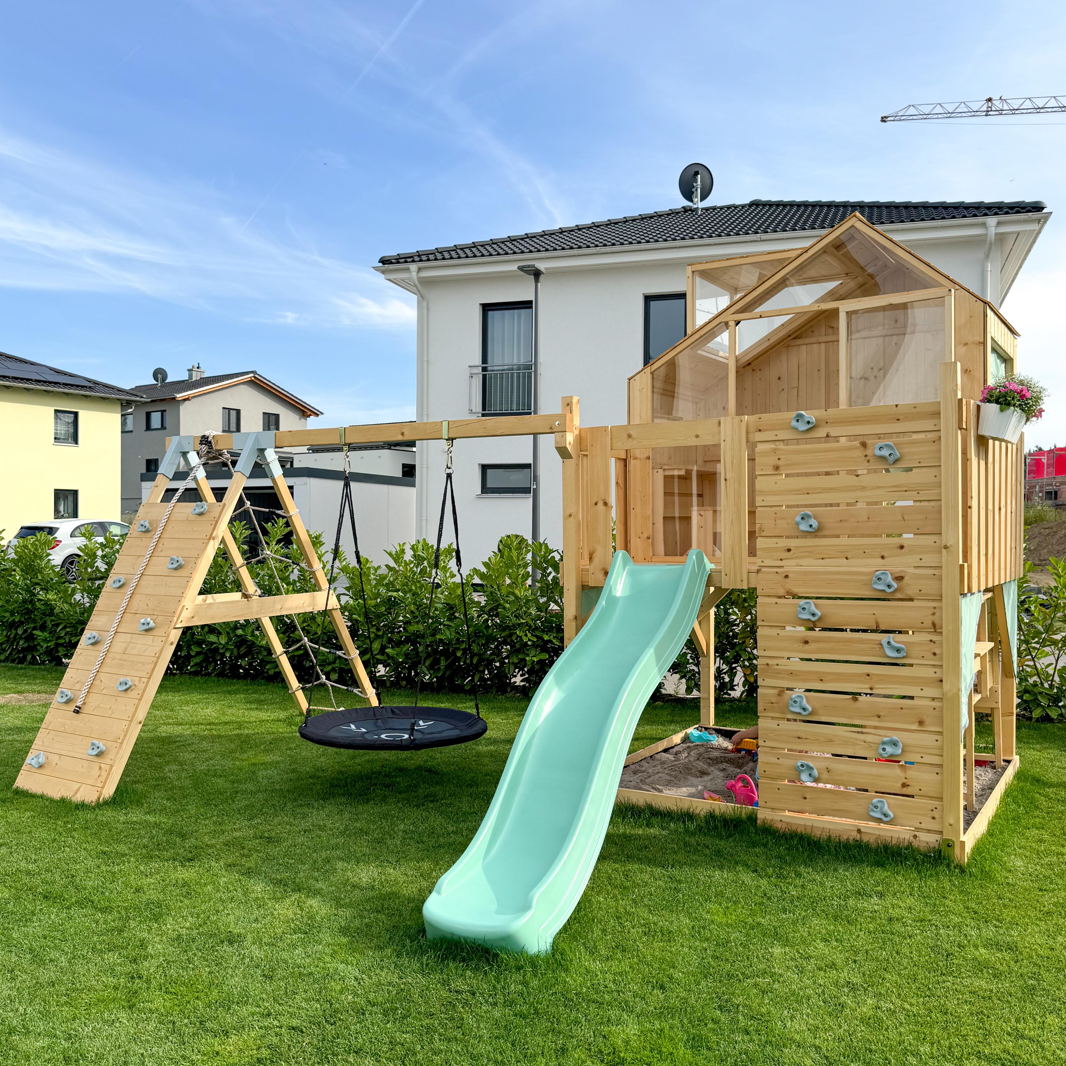 Le jardin est un formidable terrain de jeu pour les enfants, et nous souhaitons encourager les activités extérieures. En plus de la stimulation physique et de la dépense d'énergie, ces dernières favorisent également l'ímaginaire et la créativité. Tranformez ainsi votre jardin en un véritable espace récréatif. Nos jeux de plein air sont exclusivement fabriqués en bois de haute qualité, garantissant ainsi des produits parfaitement adaptés à un environnement extérieur, résistants et durables. Nous vous proposons des toboggans, tout un assortiment de balançoires mais aussi une incroyable sélection d'aires de jeux.