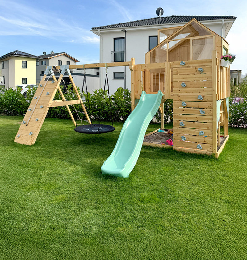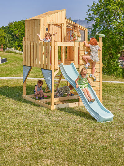 Notre force réside également dans la modularité de nos produits. Ces derniers s’adaptent, et se personnalisent selon vos envies et vos besoins. De ce fait, nos jeux d’extérieur conviennent à une multitude d’espaces et ce peu importe la superficie. Si vous avez un petit jardin, optez donc pour une maisonnette de jeu ou un toboggan individuel. Si vous recherchez une structure plus grande et modulable, nos tours à grimper et nos aires de jeux sont idéales. Équipées d’un toboggan et de balançoires, elles offrent une multiplicité d'emploi. Certaines de nos tours à grimper possèdent même une petite cabane, parfaite pour stimuler l’imaginaire et la créativité de vos enfants.
