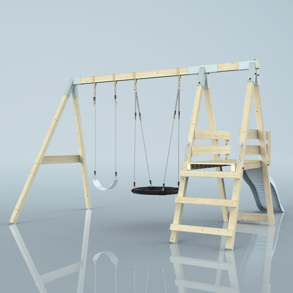 Les matériaux de qualité supérieure répondent à tous les souhaits et la balançoire Hippocampe garantit un plaisir particulièrement long.
