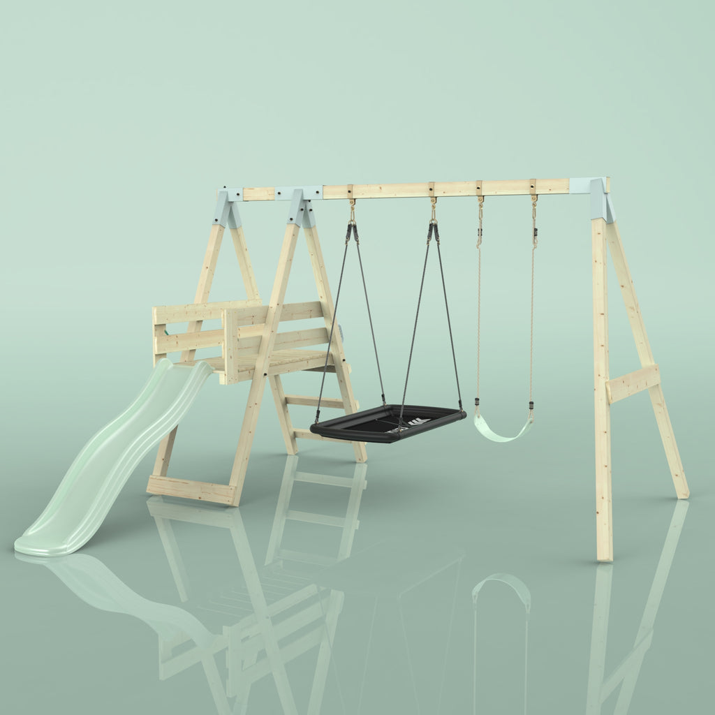 Notre PolarPlay Balançoire Hippocampe fait battre le cœur des enfants. En plus de la balançoire double, un toboggan garantit un grand plaisir de jeu dans son propre jardin. Grâce à la balançoire pour bébé, les tout-petits peuvent déjà contempler le jardin de la maison depuis la perspective d'un oiseau, tandis que les frères et sœurs plus âgés ne se lassent pas du toboggan.