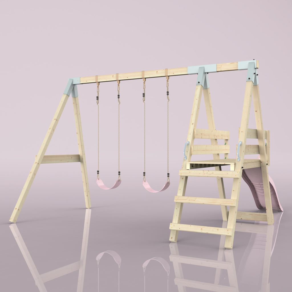 Balançoire avec raccords métalliques bleu glacier et poignées de maintien pour toutes les variantes de couleur