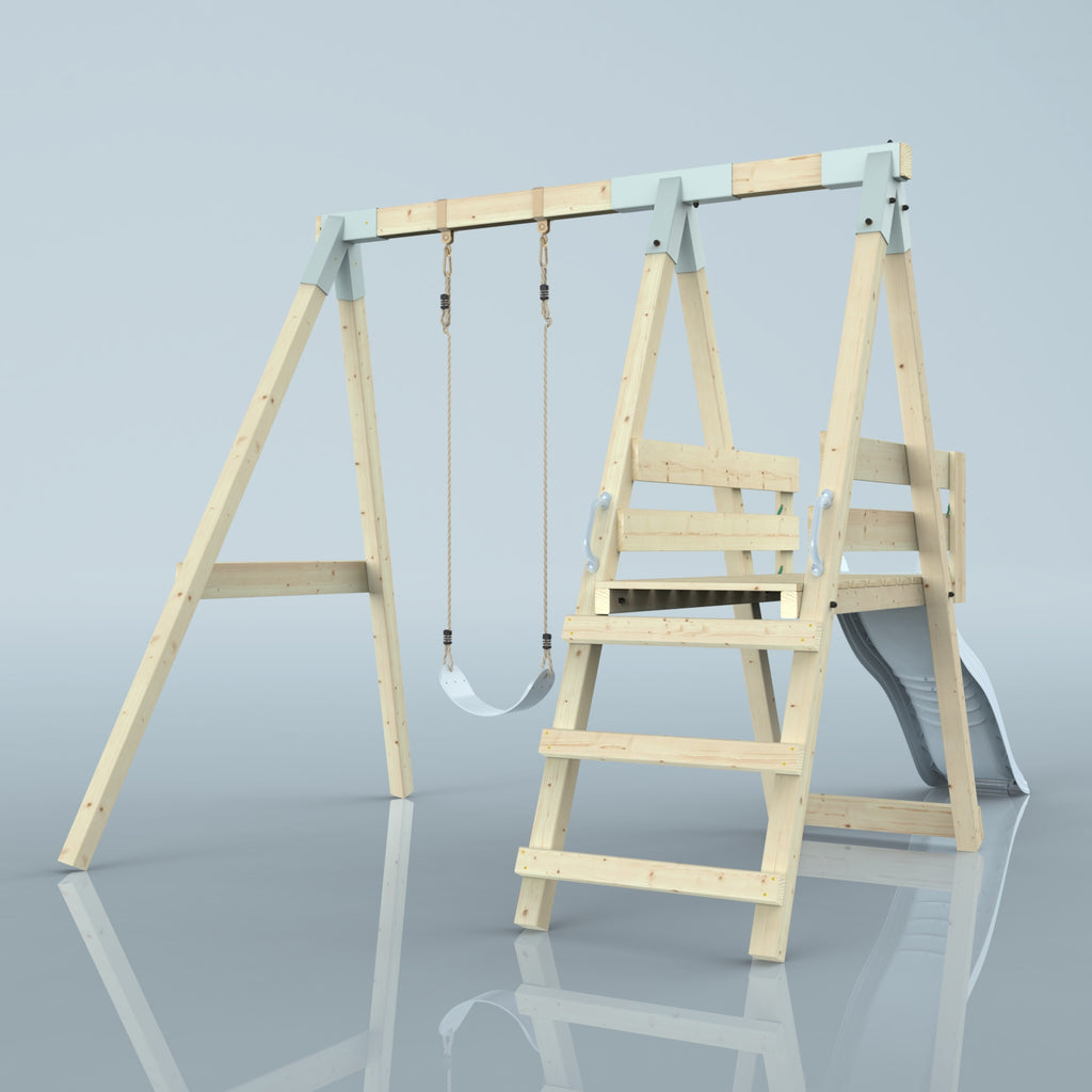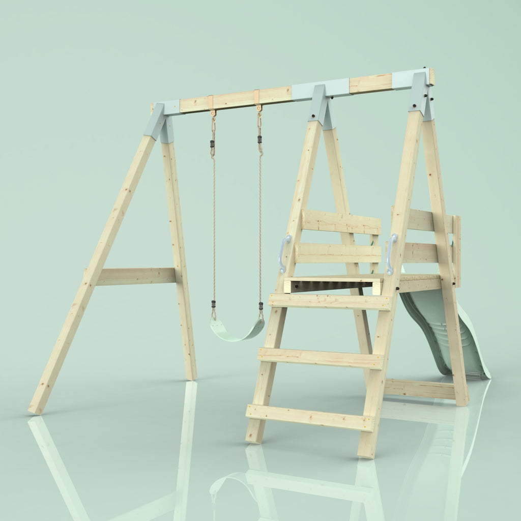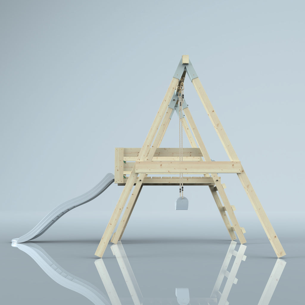Avec notre balançoire, tu portes l'expérience de jeu à un niveau supérieur : qu'il s'agisse de glisser hors d'une maison en feu ou de contempler la forêt vierge d'en haut sur une balançoire liane - l'imagination n'a pas de limite et ce, de manière si compacte !