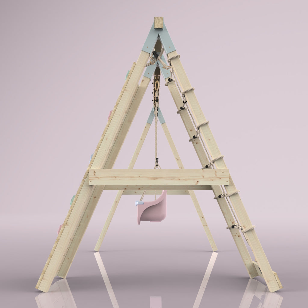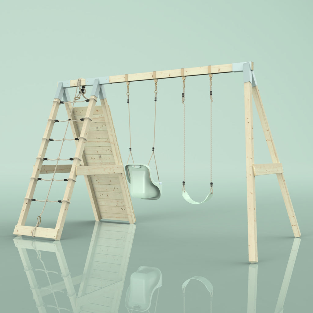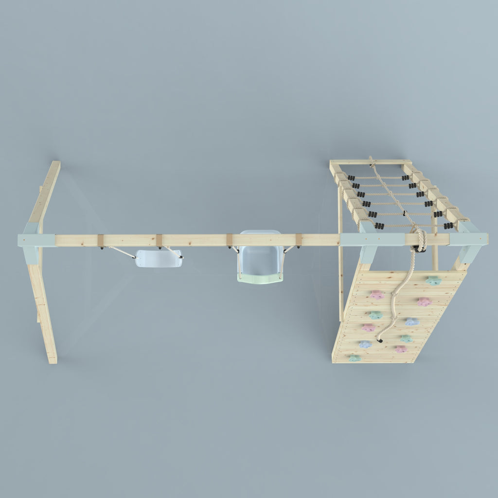 Notre portique à grimper PolarPlay Coucou est particulièrement adaptée aux frères et sœurs qui aiment plonger ensemble dans leur imagination. En plus des deux sièges de balançoire, tes enfants peuvent se défouler pendant des heures sur le mur d'escalade et les filets à grimper.