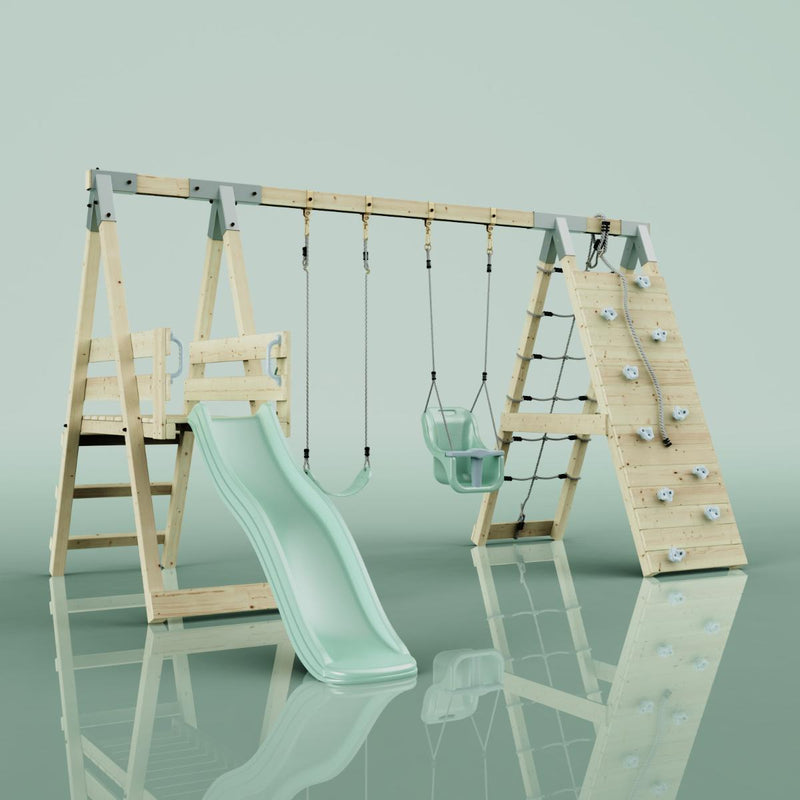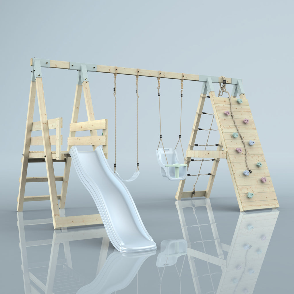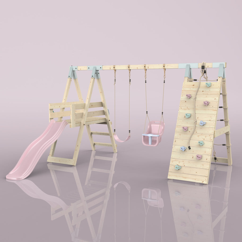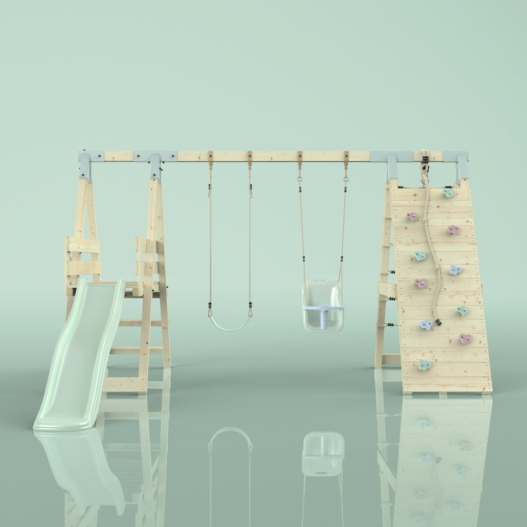 Notre PolarPlay portique á grimper Papillon a tout ce dont les enfants peuvent rêver et fait battre leur cœur plus fort. En plus de la balançoire, un toboggan garantit un grand plaisir de jeu dans son propre jardin. Grâce à la balançoire pour bébé, les tout-petits peuvent déjà observer le jardin de la maison depuis la perspective d'un oiseau, tandis que les frères et sœurs plus âgés, pleins d'aventure, ne se lassent pas du mur d'escalade.