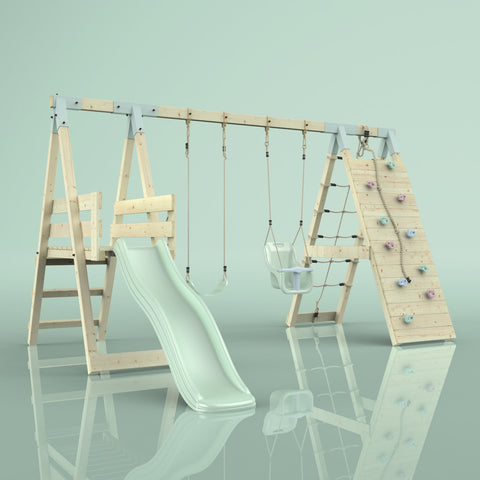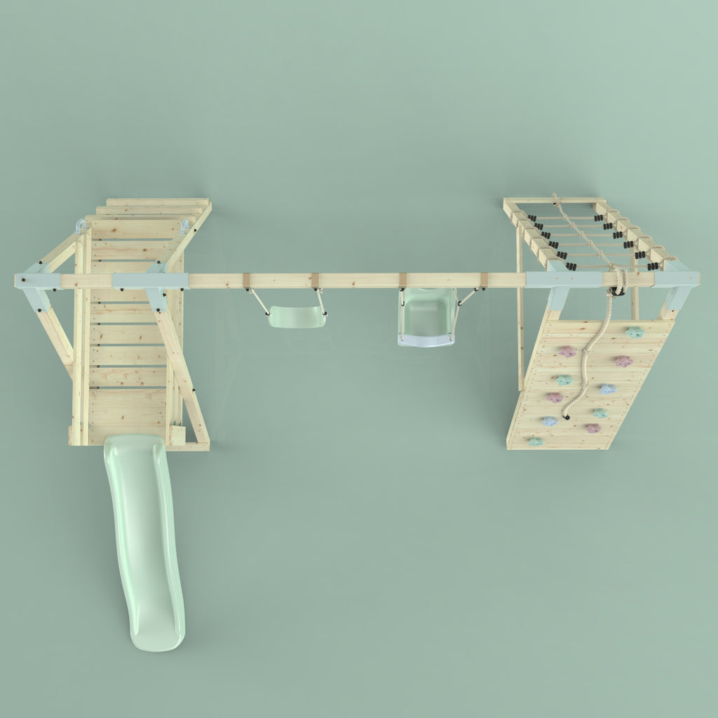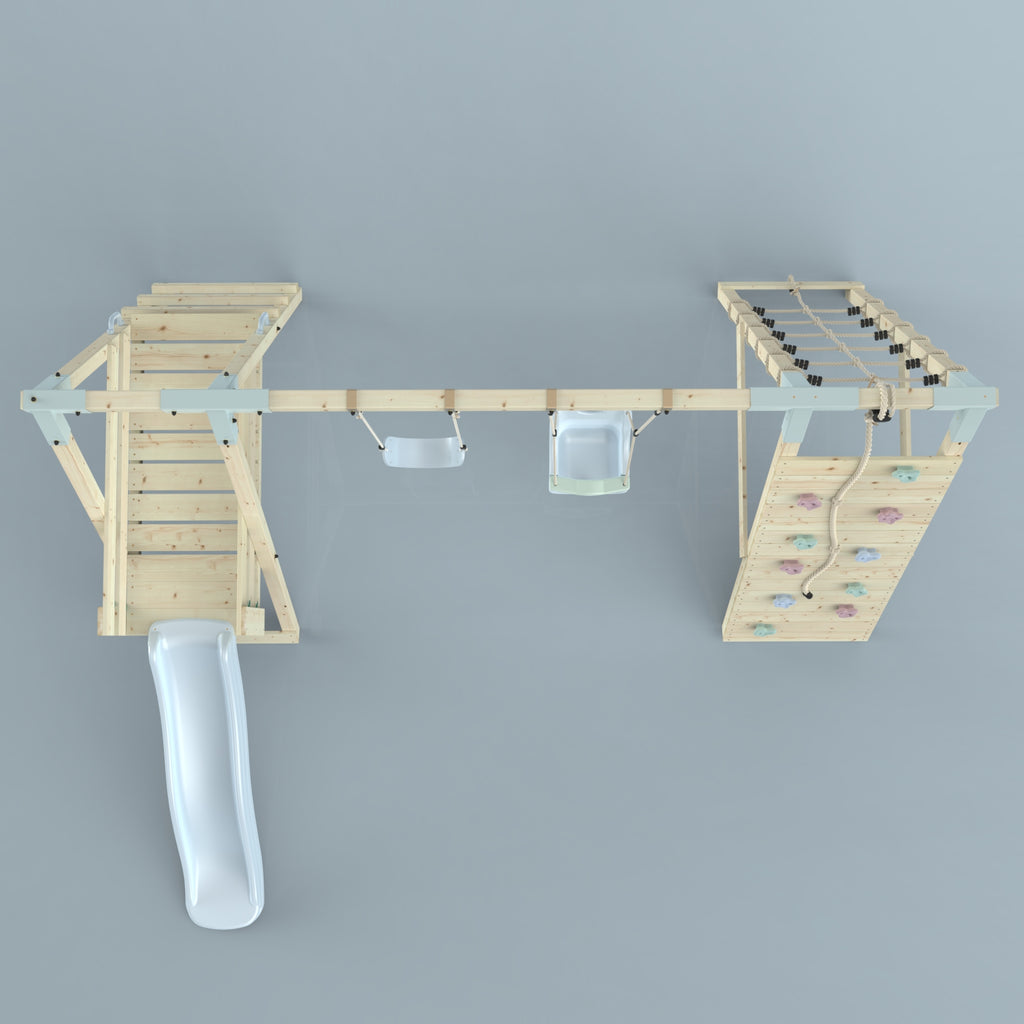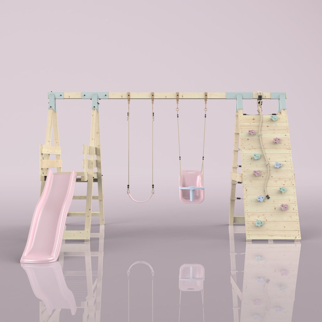 Notre PolarPlay portique á grimper Papillon a tout ce dont les enfants peuvent rêver et fait battre leur cœur plus fort. En plus de la balançoire, un toboggan garantit un grand plaisir de jeu dans son propre jardin. Grâce à la balançoire pour bébé, les tout-petits peuvent déjà observer le jardin de la maison depuis la perspective d'un oiseau, tandis que les frères et sœurs plus âgés, pleins d'aventure, ne se lassent pas du mur d'escalade.